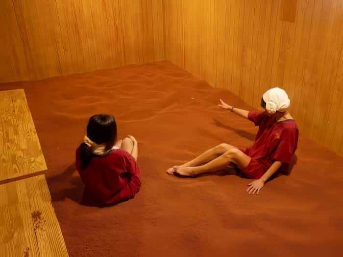 In Korea, there are around 9,400 sauna bathhouses, with about 3,000 located in Seoul alone. The popularity of saunas is largely due to their ability to generate heat that penetrates the skin, causing sweat to be released from deep within the body. This promotes better circulation. However, unlike regular steam saunas, the Thermal Loess Red Clay Sauna works even deeper. It uses far-infrared rays and negative ions to help release toxins and accelerate blood flow up to 4-5 cm below the skin surface, easing muscle tension and alleviating joint pain.